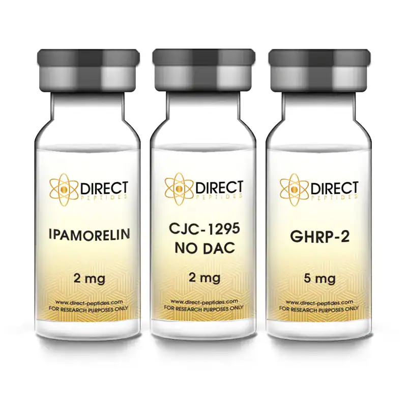 The triple stack of Ipamorelin, CJC-1295 no DAC, and GHRP-2 is a peptide combination commonly used to enhance growth hormone production through their combined effects.